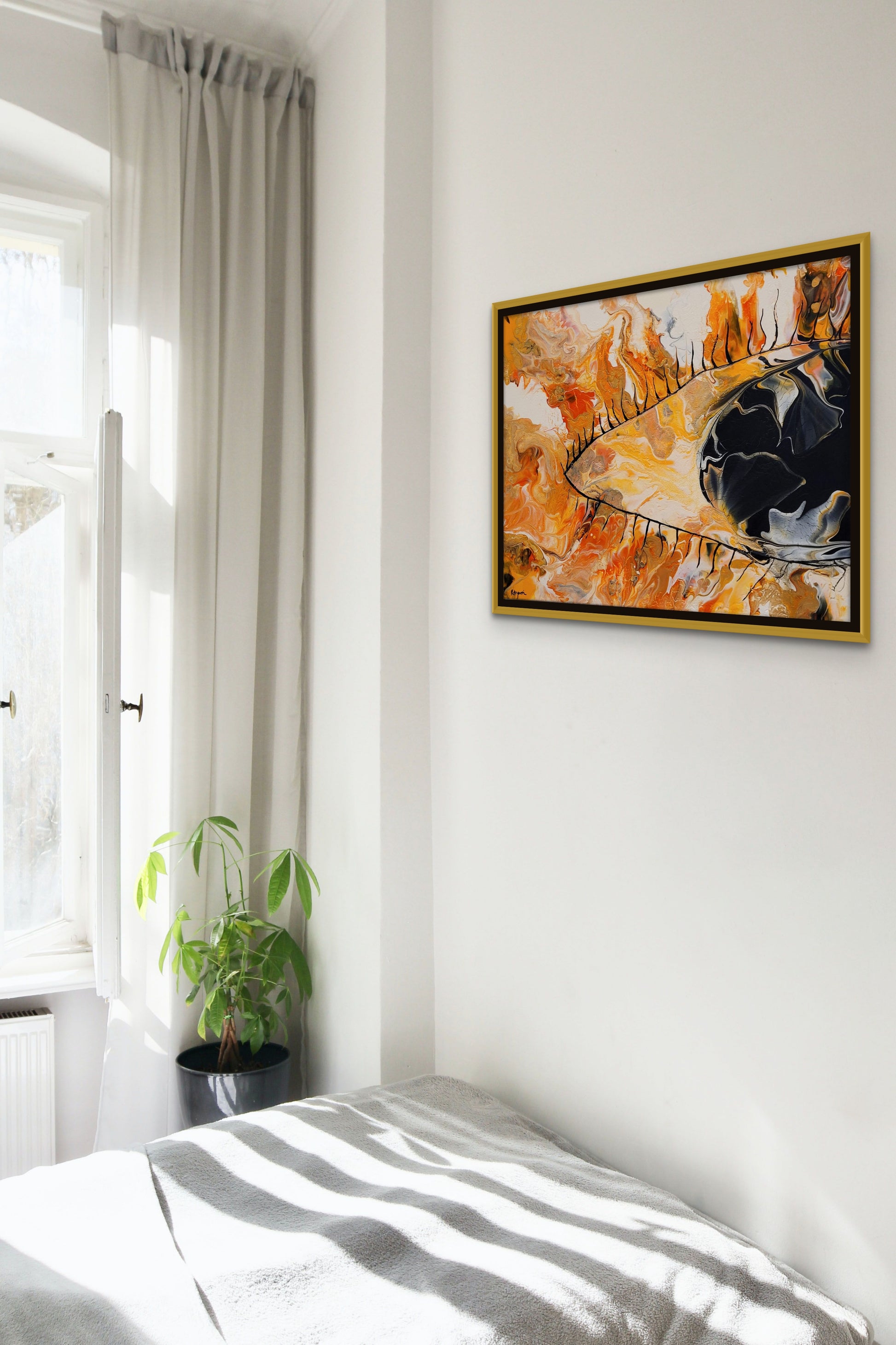 Measuring 16"x20" this artwork came with a minimalist contemporary golden frame.