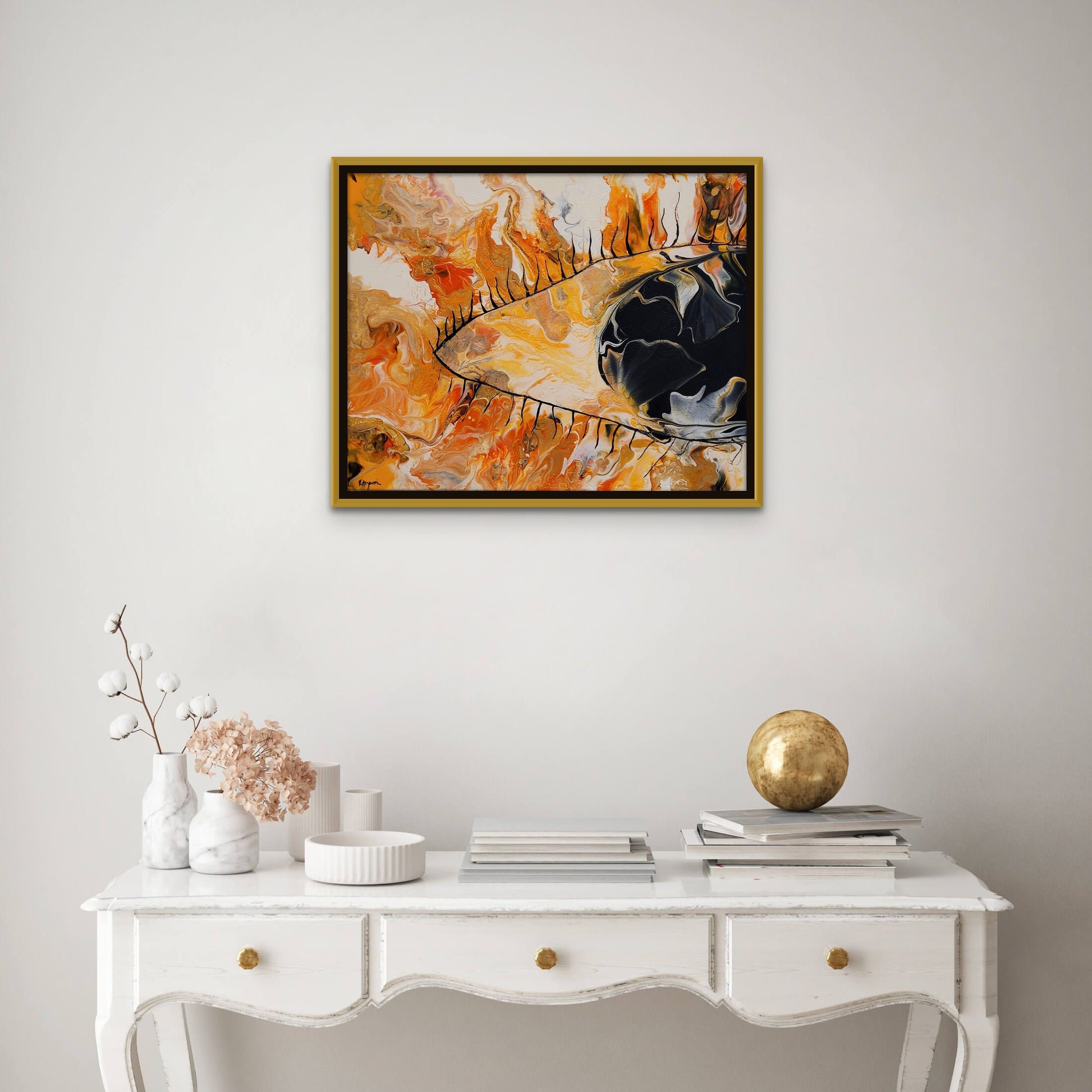 "Eye See You" is a special edition original painting Renata created to celebrate women history month in March 2022. It meshes the figurative and literal translations of "seeing things through the artist's lens. The background is bold yet effeminate through its color and shape, representing women's strength and femininity.