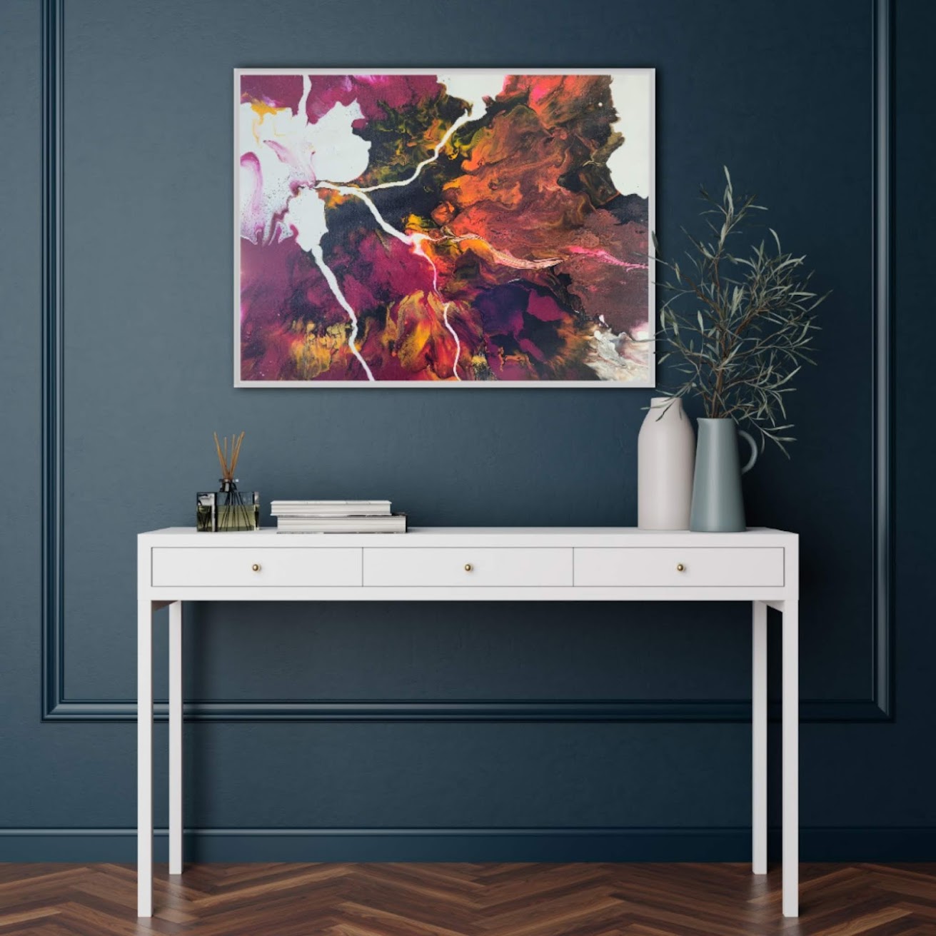 Measuring 16"x20" on 1.5" thick gallery wrapped canvas.