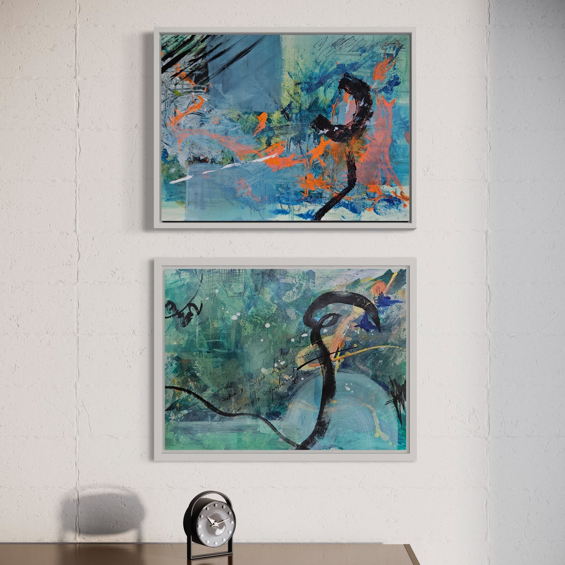 Mixed Media on archival cotton board. Framed, wired and ready to hang.